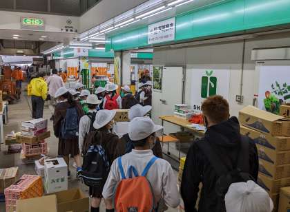 続いて、野菜を扱う3階にあがりました。競り場の台に上がらせてもらい、写真を撮りました。変わった野菜も見つけました。