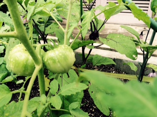 美味しいトマトができそうです。なかよしの子ども達、赤く熟すまで楽しみですね。