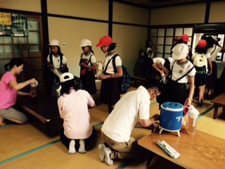 昼食とカッター体験で、お茶を全て飲み干し、喉がカラカラになっていたので、お宿の方のご配慮で、お茶をいただきました。