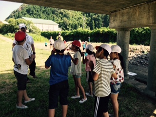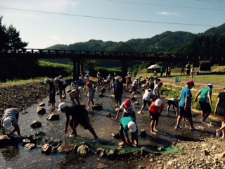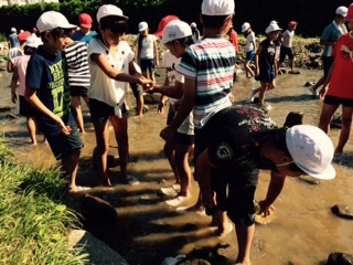 魚つかみ、水に入るなり、冷たあい、キャー!こわあい!