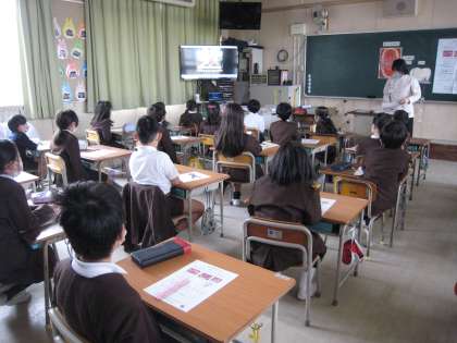 大阪市教育委員会の歯科衛生士の先生から、6歳臼歯の大切なお話やむし歯のもとになる歯こうを取るための歯のみがき方について教えていただきました。