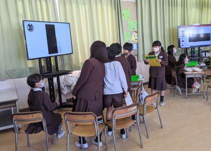 3年生は「ジェスチャーゲーム」です。3年生がお題に合わせて、前でジェスチャーをします。制限時間内にいくつ当てられるかな?