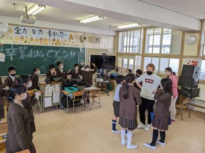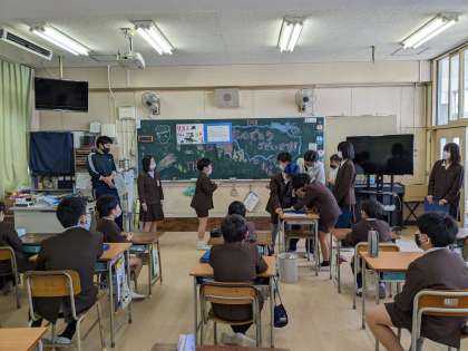 お楽しみゲームは、6年生が各学年をたてわり班数人で回り、各クラスの班のメンバーとゲームを楽しみました。各クラスみんなに歓迎されてゲームを始める6年生は、とてもうれしそうな顔でゲームを楽しんでいました。