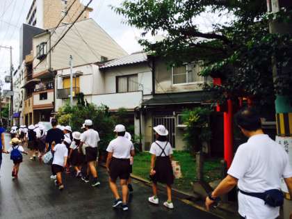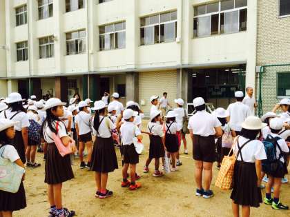 地区別集団登校の班に転入生も加わり、担当の先生が付き添って、集団下校をしました。