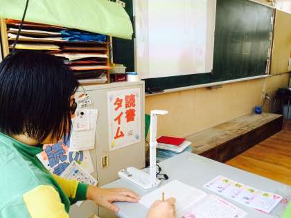 子ども達は嬉しそうな顔で、ノートのマス目に文字や数字を書いていました。