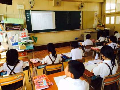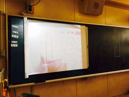 2年生の教室を訪問すると、担任の先生がちょうど書画カメラを使って指導をしてくださっているところでした。8月31日に入ったばかりのカメラです。