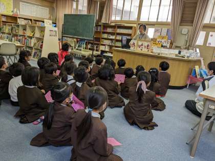 学校図書館の使い方を火曜日に来てくださる学校司書の先生に教えてもらいました。気をつけることなどを、しっかり聞いていました。
