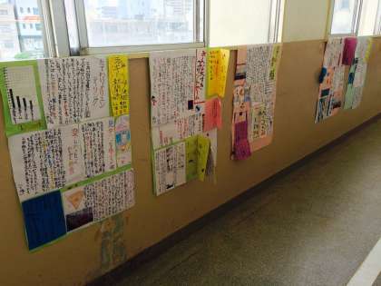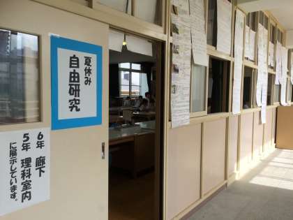 土曜授業(理科室、4年廊下壁面、職員室前掲示) 9月5日