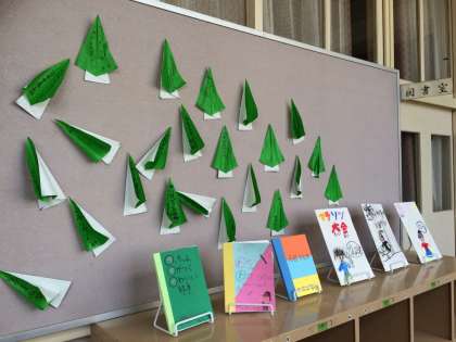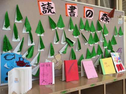 『読書の森』と『絵本』が図書室前に掲示されています。