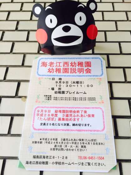 明日、9月9日は「ひよこ組」の日です。9時30分から始めます。今年も「くまもん」が来ますよ!