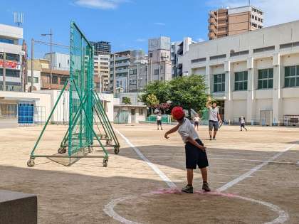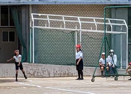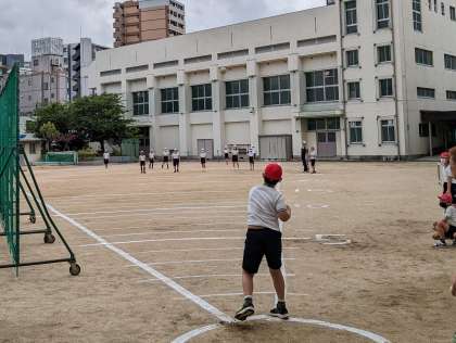 朝方まで降っていた雨も上がり、今日はスポーツテストのソフトボール投げを、各学年で行いました。みんな、少し重たいソフトボールを、精一杯投げました。