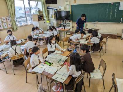 「しんぶんをつくろう」の単元で、今日は、新聞にはどんなことが書いてあるのか、グループで新聞を広げながら、調べました。色々なことが記事になっていることに気が付きました。新聞づくりに生かしていきましょう。