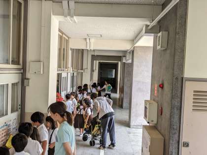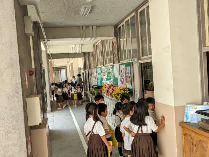 今日は1年生を連れて、学校をまわり、ていねいに説明してくれました。1年生もまわった教室にシールを貼ってもらって、うれしそうでした。