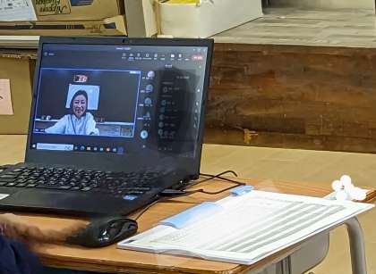 まず1年生と2年生がお家でTeamsをつなげて、先生とコミュニケーションをとったり、学習クイズをしながら、マイクやカメラの操作やリアクションを確認しました。