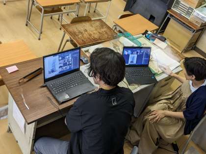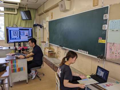 続いて3年生、4年生がTeamsでつながって、オンライン学習をしました。3年生は、社会科の大阪市の学習を振り返ってクイズに答えていきました。4年生は漢字の学習のあと、社会科の地図を使った復習クイズをしました。
