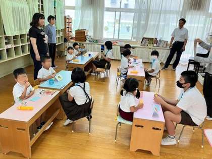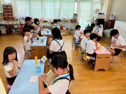 健康委員会の児童が幼稚園に出張して、歯みがき見まもり隊の活動を行ってきました。