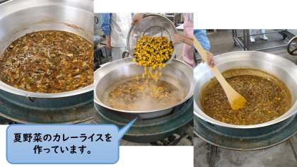 夏野菜のカレーライスは、夏野菜のかぼちゃ、なす、ピーマンなどを使用した夏を感じることができるカレーでした。