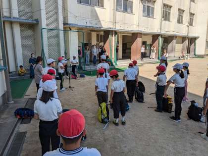 快晴の空のもと、時間までに全員そろって、出発式を行いました。