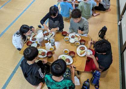 待ちに待った夕ご飯。美味しそうなメニューにみんなテンションがあがっています。