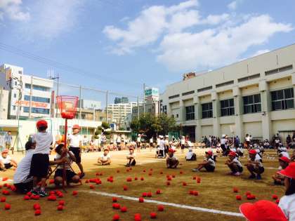 玉入れは見るのと、するのでは大違い。玉を入れるのは難しいです。
