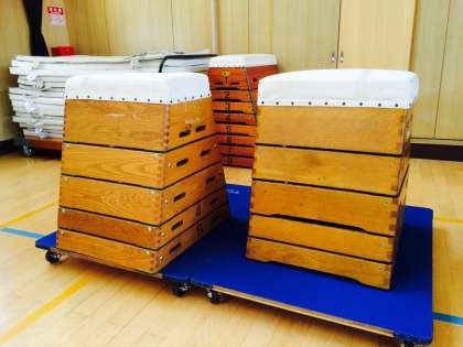 単学級で、しかも1クラスの児童数が少ない本校では、跳び箱や踏切板、マットなどを安全に、運搬できるようにしたいと考え、校長経営戦略予算の加算配付で、次の学校体育用品を購入しました。