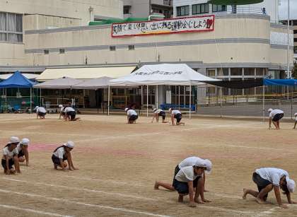 最後の練習に集中する子どもたち。暑い中、みんなで力を合わせてきたことを、日曜日には全力で発揮してくれることと思います。