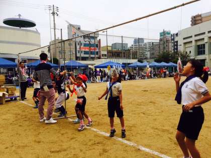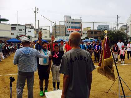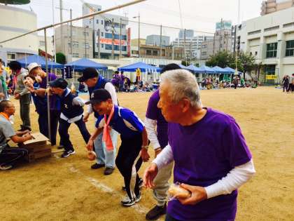 雨も上がり、今年も海老江西小学校の運動場を会場に、『第41回海西スポーツ大会』が開催されました。