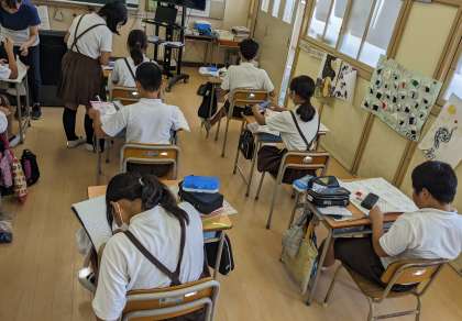 6年生が家庭科でナップザックを作り始めました。しるしを入れたところを仮縫いしています。久しぶりの手縫い作業とあって玉結び・玉留めも思い出しながら、もくもくとすすめていました。