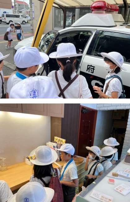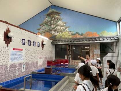 2つ目のコースは、交番やケーキ屋さん、あいあいセンター、お風呂屋さんを回りました。温泉では、テレビの取材を受けた話も聞き、子どもたちはテンションが上がったようです。