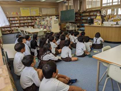 火曜日は司書の先生がいて、時間の最初に読み聞かせをしてもらいます。今日の2年生は紙芝居をしてもらいました。言葉の面白さやお話のリズムに引き込まれ、笑いも起こって楽しそうでした。