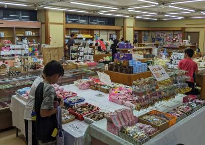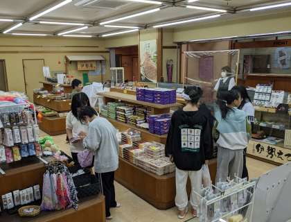 夕食、入浴が終わって、宿の売店でお土産を選んで買いました。残りのお小遣いと、渡したい人の数、そしてそれは誰なのか、考えを巡らせながら、悩みに悩んで買っていました。