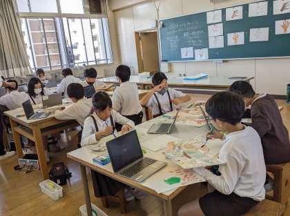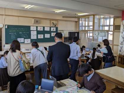 今日は福島研究の日の取り組みで、区内の各小学校で、いろいろな教科での授業公開と研究協議会がありました。本校では、5年生が図画工作科の授業を行いました。何かを掴む自分の手を描き、絵の具の混色や重色を工夫しながら、工夫して集中して表現していました。区内の各小学校から全部で15名くらいの先生方が来られて、授業の後も図工の表現方法について、勉強会をしました。