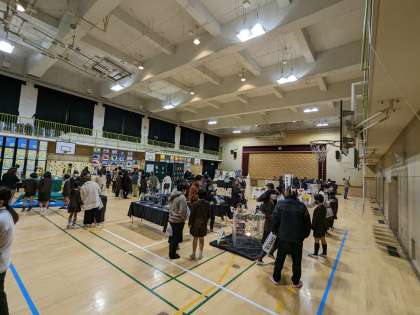 今日は土曜参観です。1時間目は高学年が作品展の親子鑑賞です。自分が作った作品や友達の作品について、作った思いや考えを伝えていました。保護者の皆さんも笑顔で答えてくれていました。