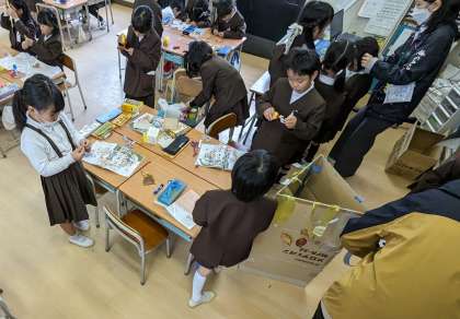 1年生は生活科、いろいろな素材を使って、楽器やおもちゃやゲーム、飾りなど様々な工夫をして、また、できたもので楽しみながら、制作活動を進めました。