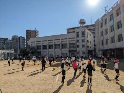 今日から1時間目終了後、なわとびタイムが始まりました。週2回、短い時間ですが、みんなで前跳び、後ろ跳び、好きな跳び方と音楽に合わせて跳びます。一人一人が練習して、なわとびタイムでみんなで楽しく体力アップを図りましょう。