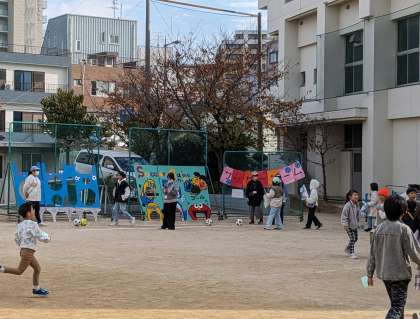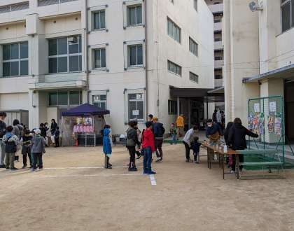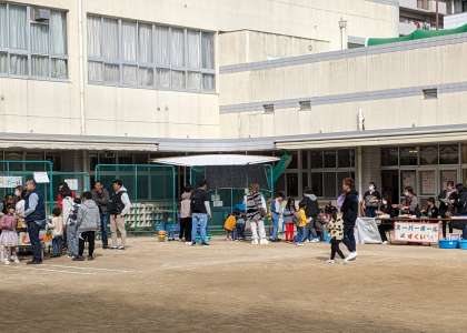 今日は、阪神・オリックスのパレードの向こうを張って、校庭で小学校・幼稚園のPTAのみなさんが、子どもたちのためにお祭りを開いてくれました。卒業生も来てくれて、みんなで楽しんでいます。