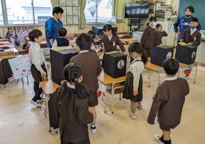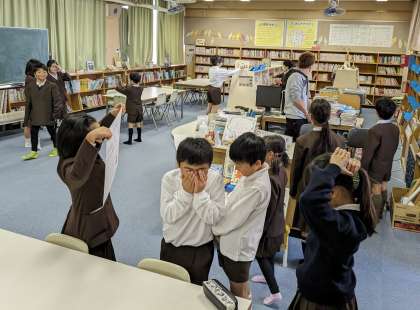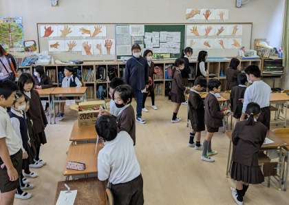 今日は1時間目に、明日の海西フェスティバルの準備を、縦割り班ごとにしました。ゲームの説明や受付方法の確認など、最後の準備と打ち合わせを進めました。