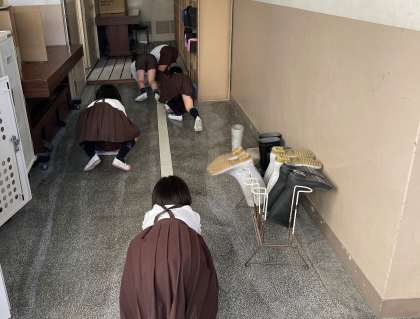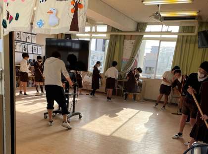 今日は2学期の終わり、年末ということで、みんなで大掃除をしました。みんなで手分けして、普段はあまり掃除しないところもきれいにしました。床を雑巾がけしたり、トイレの鏡をきれいにしたり、ていねいに細かいところまで掃除しました。