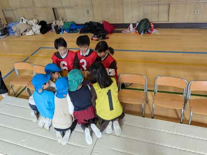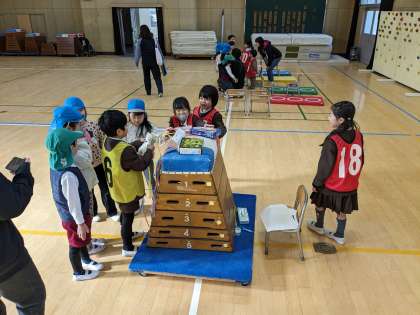1年生が生活科で進めてきたいろいろな遊びを、幼稚園保育所のみんなに説明して、楽しんでもらいました。