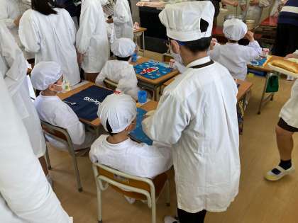1年生の給食準備は、6年生のみなさんが大活躍。1年生のみんなから「ありがとうございました!」とお礼を伝えられて、嬉しそうにしていました。