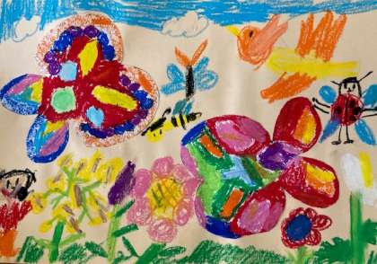 チョウチョが飛ぶ世界を自由に想像して描いていた2年生。いったいどんな世界を飛んでいるのかな?