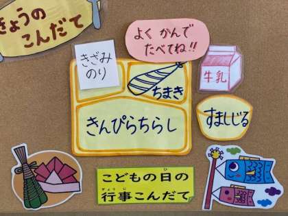 ちまきは、米粉などで作ったもちを笹の葉につつみ、蒸して作る和菓子です。「こどもが元気に育ちますように」という願いがこめられています。
