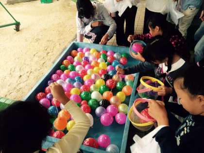 晴れていたら、運動場の広々とした場所で輪投げができたのですが。