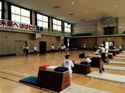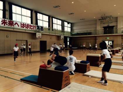 跳び箱運動の準備だけでも大変ですが、運搬車を使用することで、準備時間も短縮になり、運動量もその分増えています。