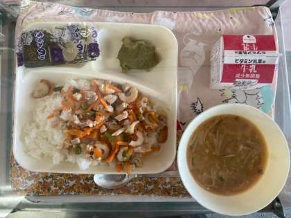 本日の献立の一つ「まっ茶ういろう」に使われている「まっ茶」とは、お茶の葉を「臼(うす)」で粉上に細かくしたものです。緑茶やウーロン茶、紅茶も、まっ茶と同じお茶の葉から作られます。