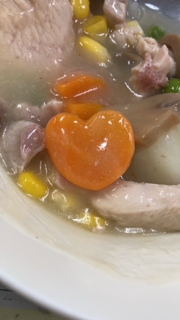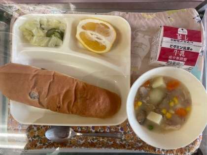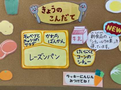 本日の献立の一つ「鶏肉とコーンシチュー」は、新製品の「シチュールウの素」が使われています。小麦粉や牛乳・乳製品が入っていないため、小麦アレルギー、乳アレルギーのある子も食べることができます。