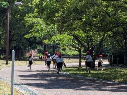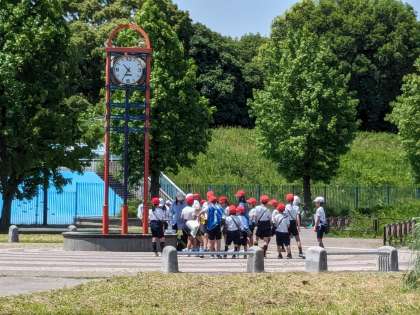 グループでポイントを探して、行ったり来たり。先生を見つけると歓声が上がります。
