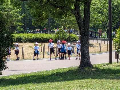 仲良く、協力してポイントを探しています。あと、少しです。がんばれ。