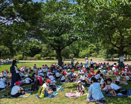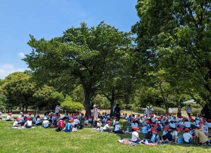 一生懸命歩いてきたので、みんなお腹がペコペコです。素早く用意をして、みんなで「いただきまぁす」