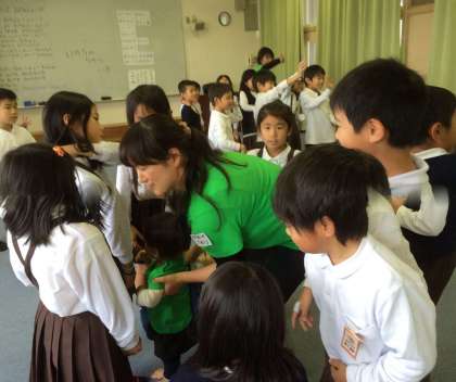 赤ちゃんがお母さんのお腹の中にいたときの、エコー写真を見せてもらった子ども達。